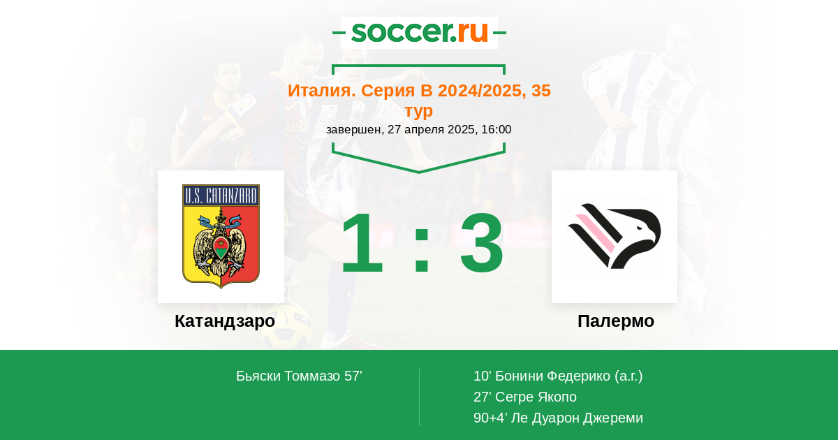 | Катандзаро | 6:3 | 2:1 | 4:2 |