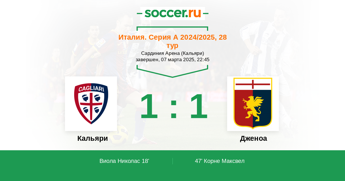| Кальяри | Дженоа | |