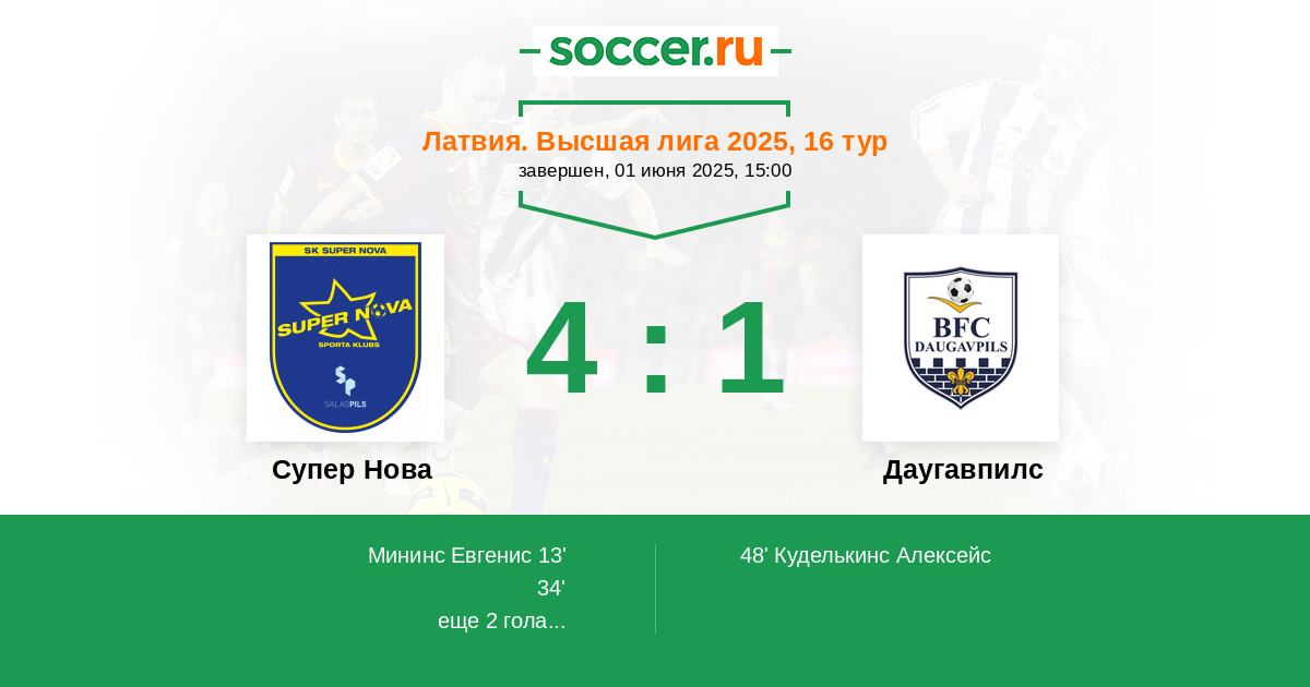 | Даугавпилс | 19:6 | 13:4 | 6:2 |