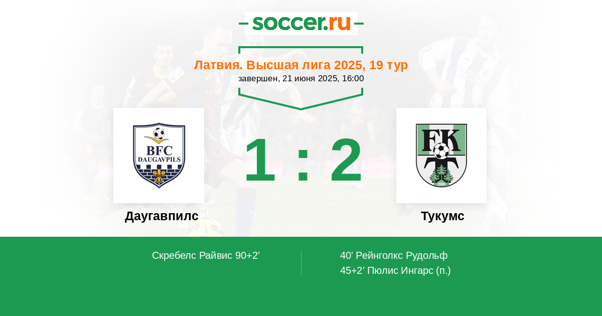 | Даугавпилс | Тукумс | |