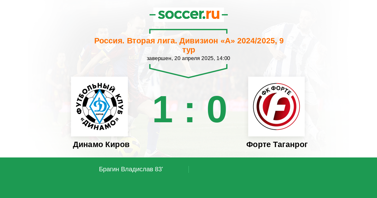 | Динамо Киров | 3:2 | 0:0 | 3:2 |