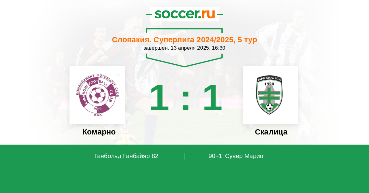 | Выигрышей гостей | 1 |