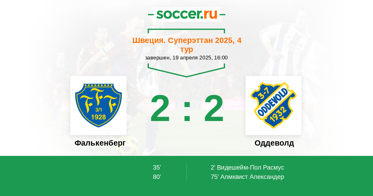 | Фалькенберг | 2:2 | 0:0 | 2:2 |