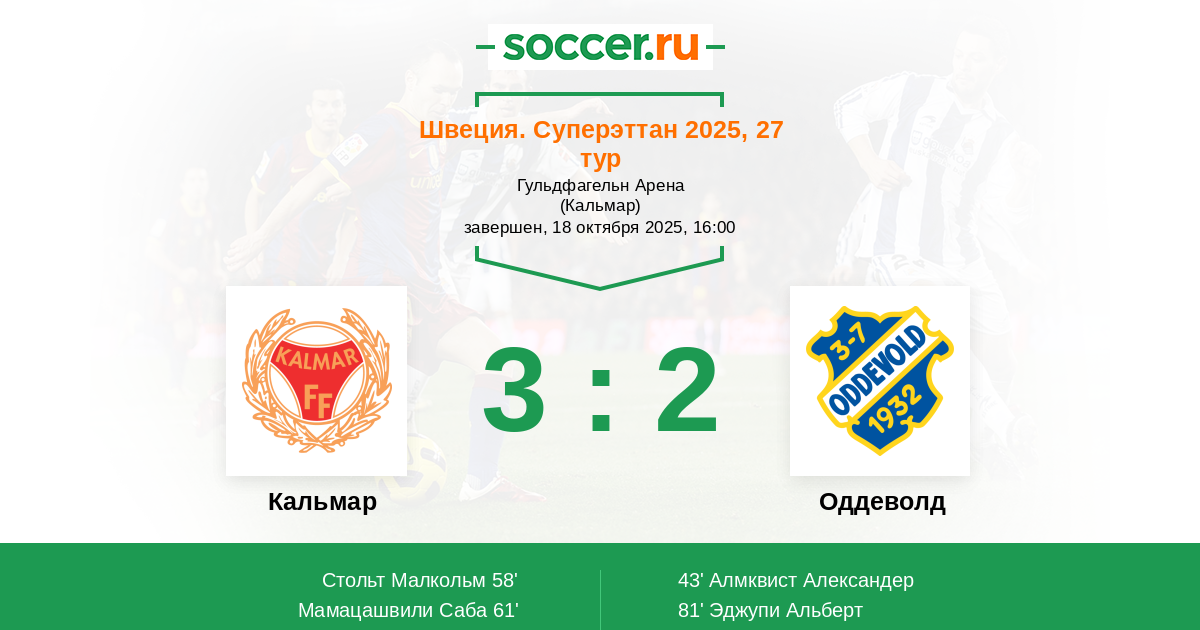 | Кальмар | Оддеволд | |