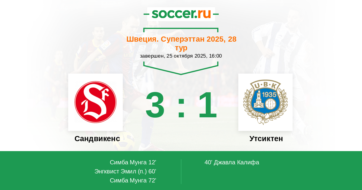 | Сандвикенс | 3:8 | 1:2 | 2:6 |