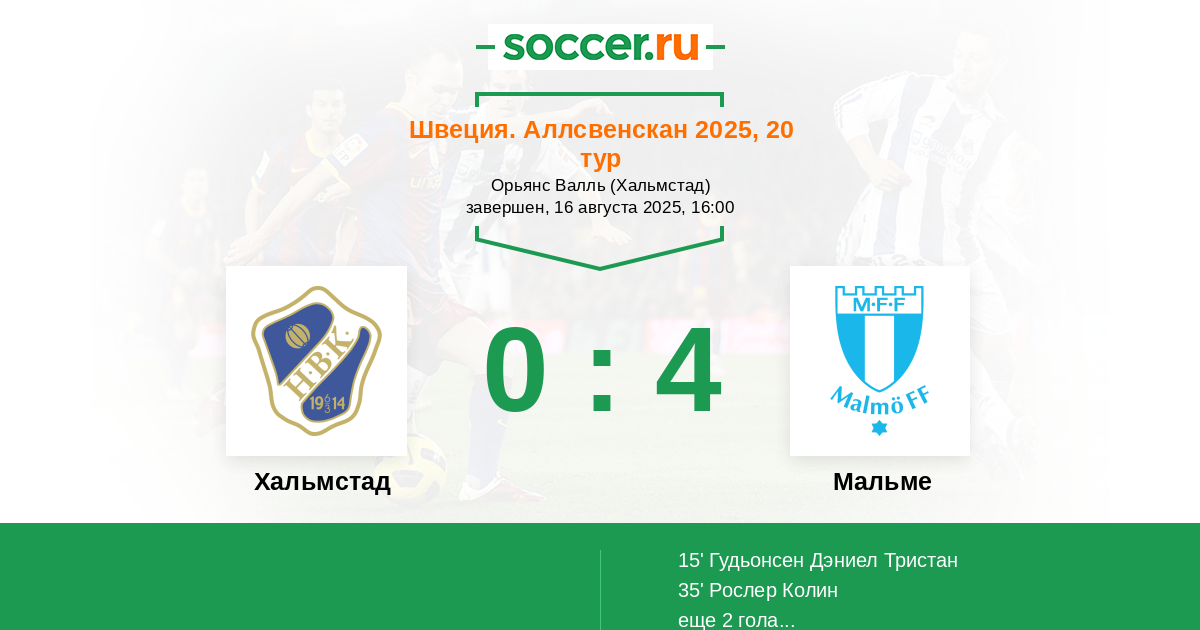| Хальмстад | 50:105 | 26:48 | 24:57 |