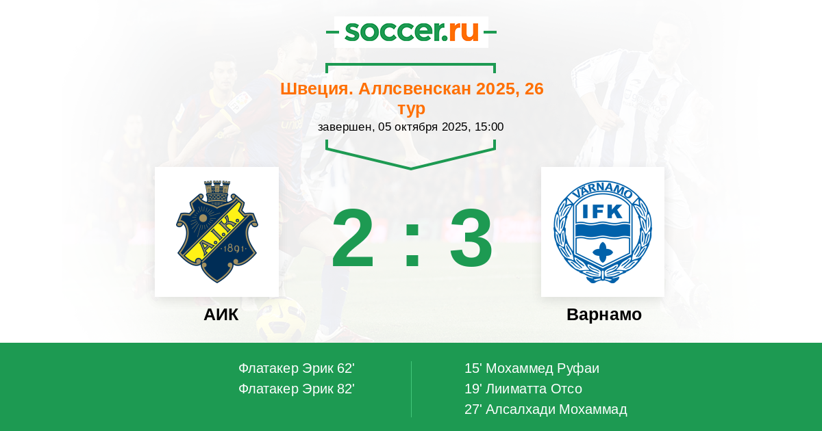 | АИК | Варнамо | |