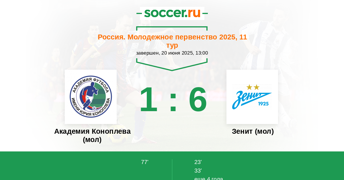 | Академия Коноплева (мол) | Зенит (мол) | |