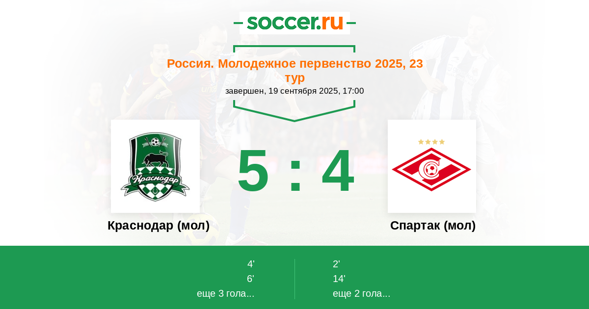 | Краснодар (мол) | Спартак (мол) | |
