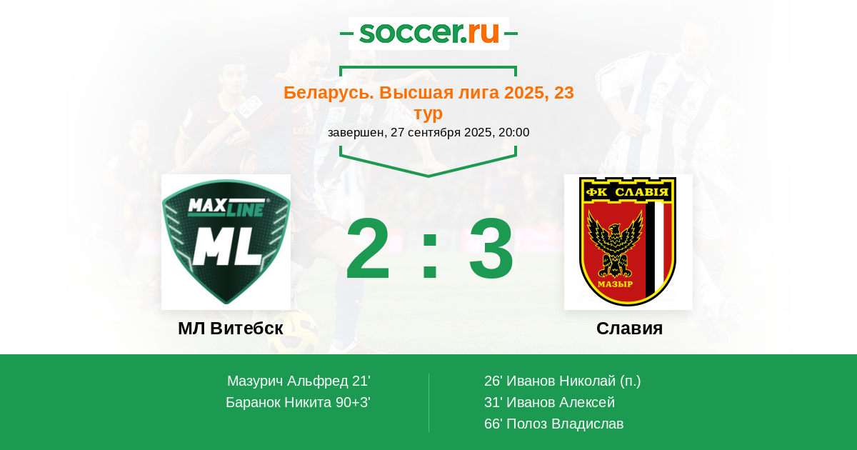 | МЛ Витебск | Славия | |