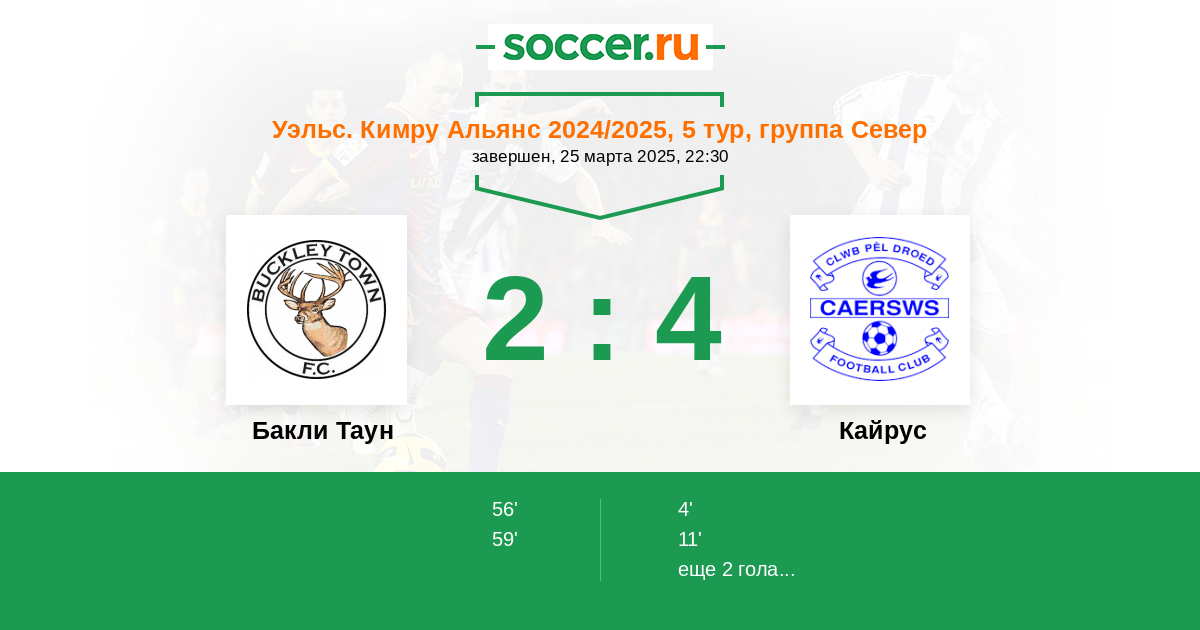 | Бакли Таун | 8:9 | 6:4 | 2:5 |