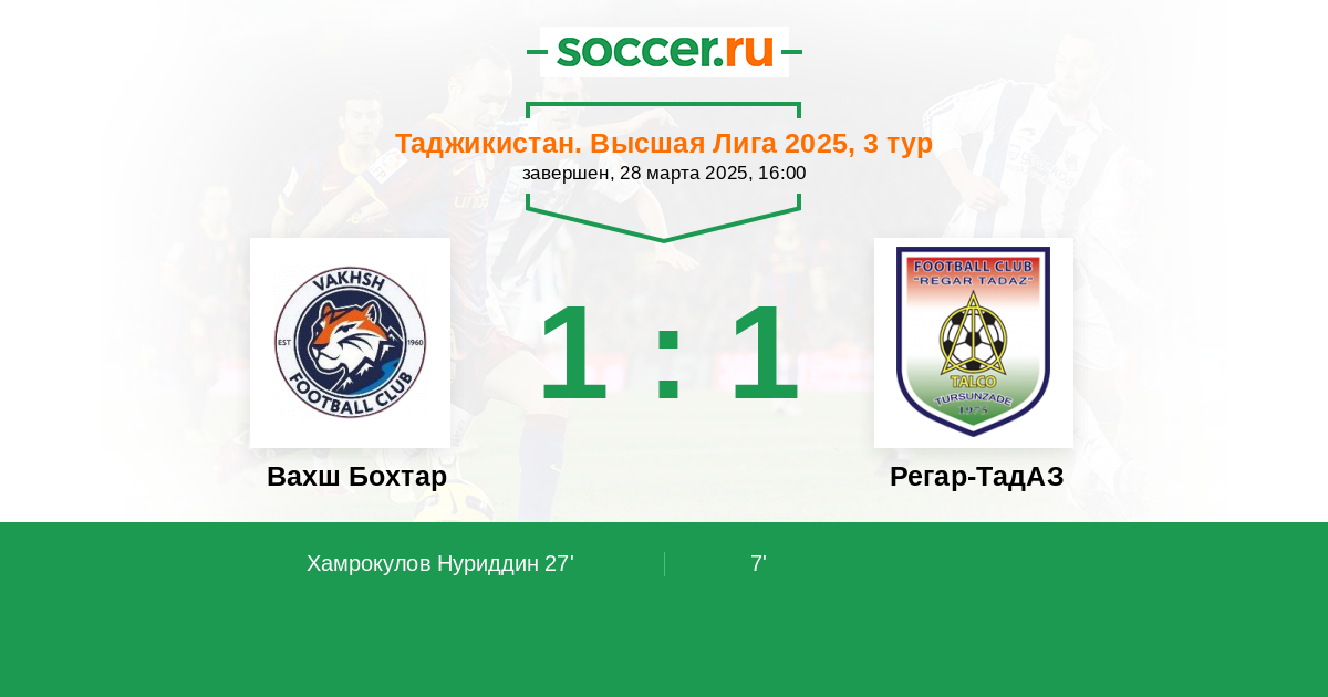 | Вахш Бохтар | Регар-ТадАЗ | |