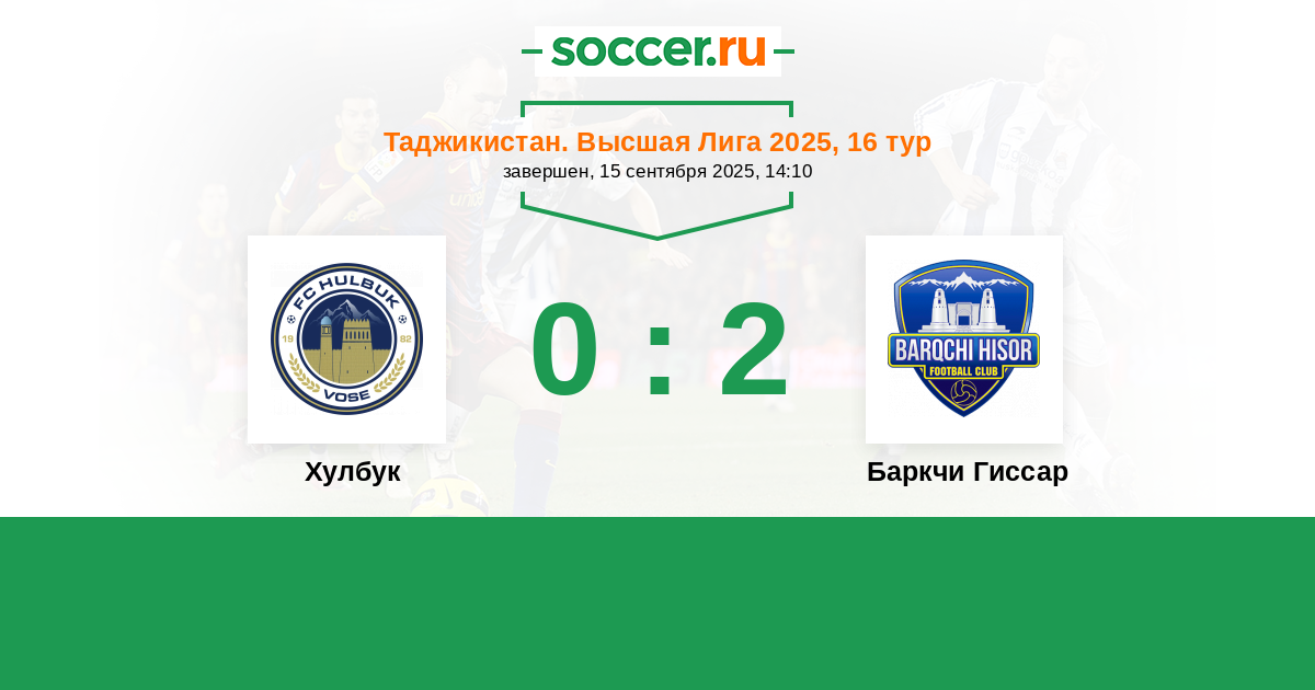 | Хулбук | 1:2 | 0:0 | 1:2 |