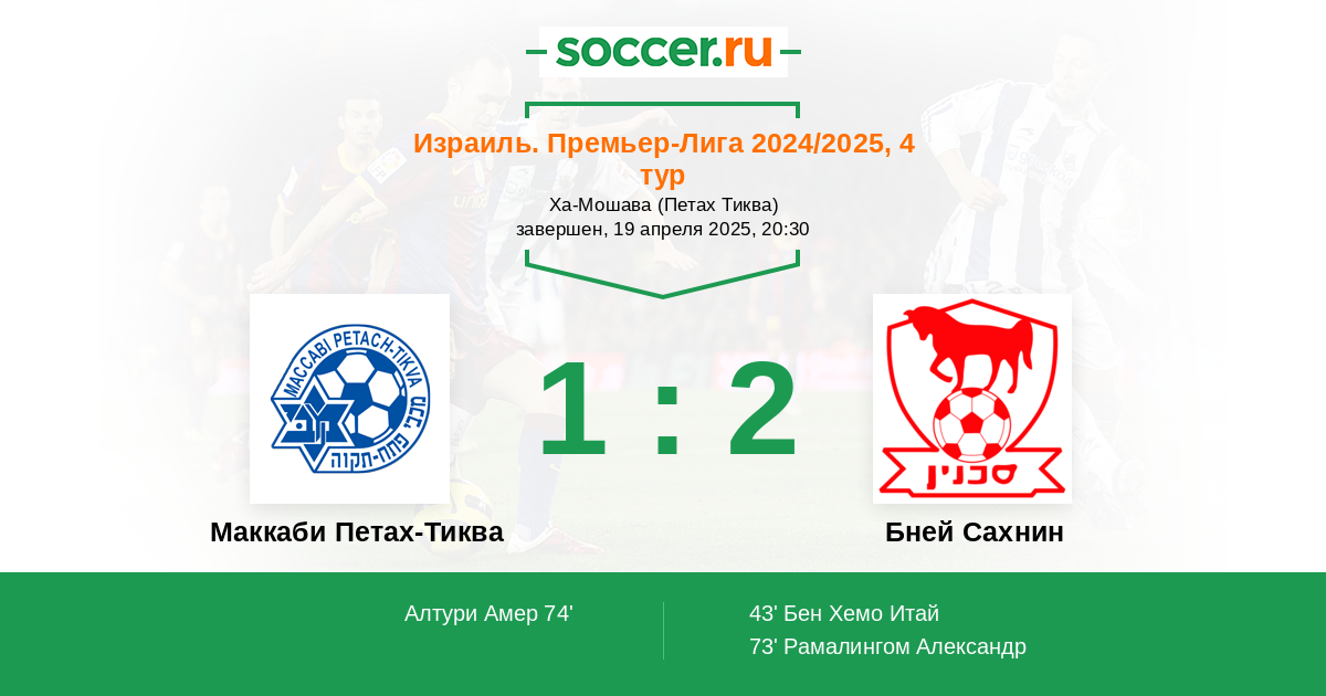 | Маккаби Петах-Тиква | Бней Сахнин | |