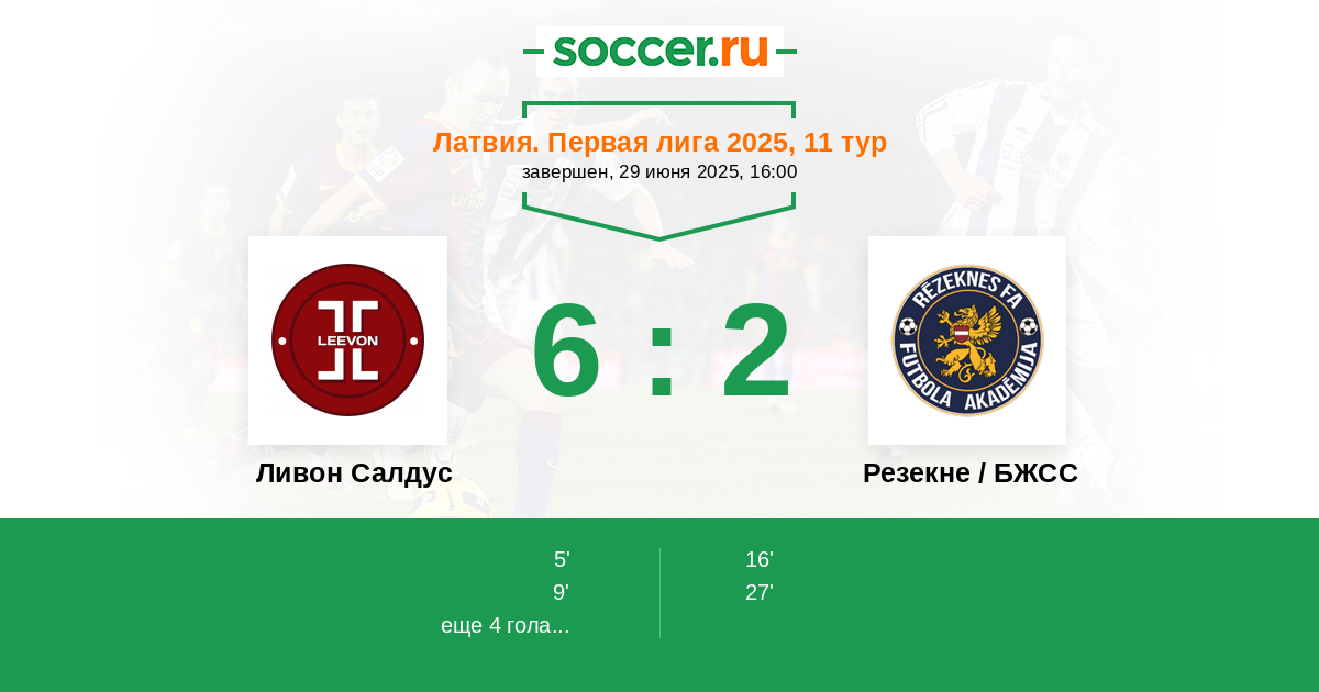 | Резекне / БЖСС | 2:13 | 1:9 | 1:4 |