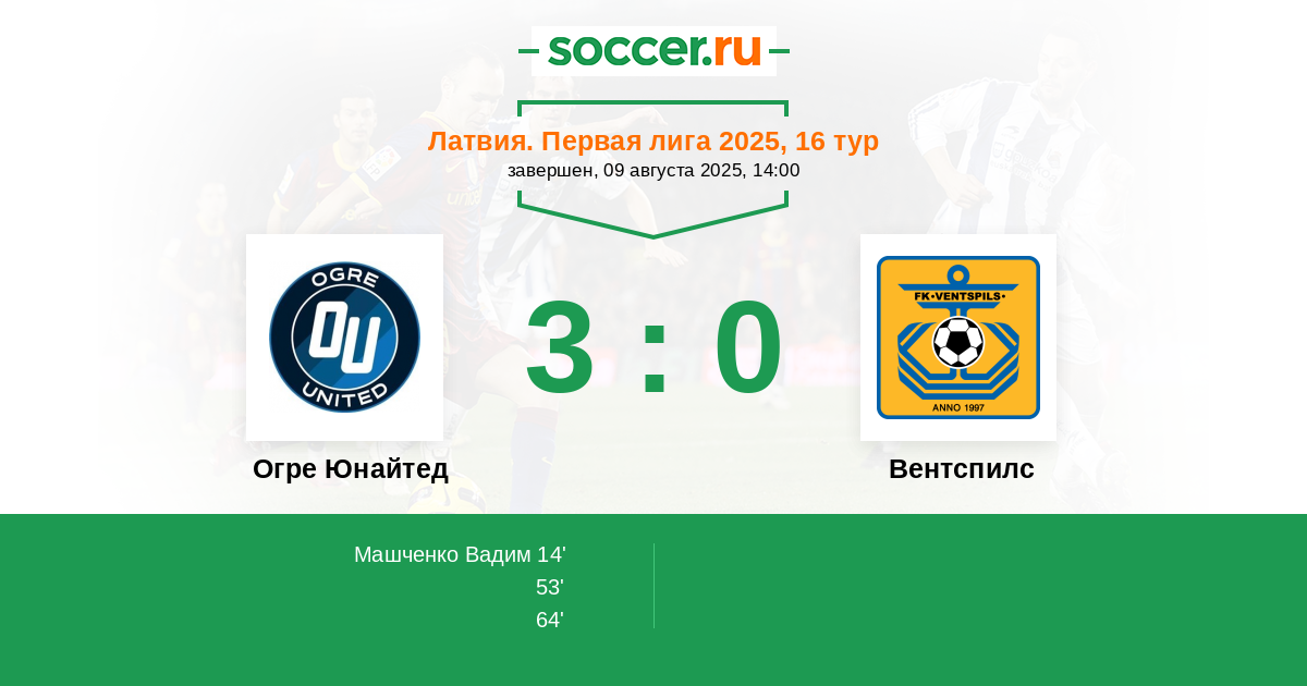 | Огре Юнайтед | Вентспилс | |