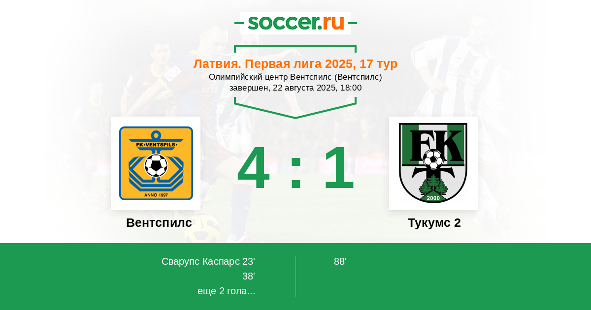 | Тукумс 2 | 4:6 | 3:5 | 1:1 |