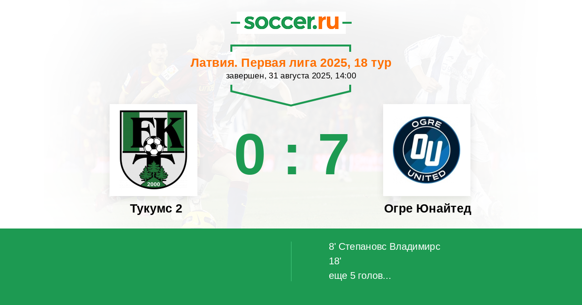 | Огре Юнайтед | 5:3 | 5:1 | 0:2 |