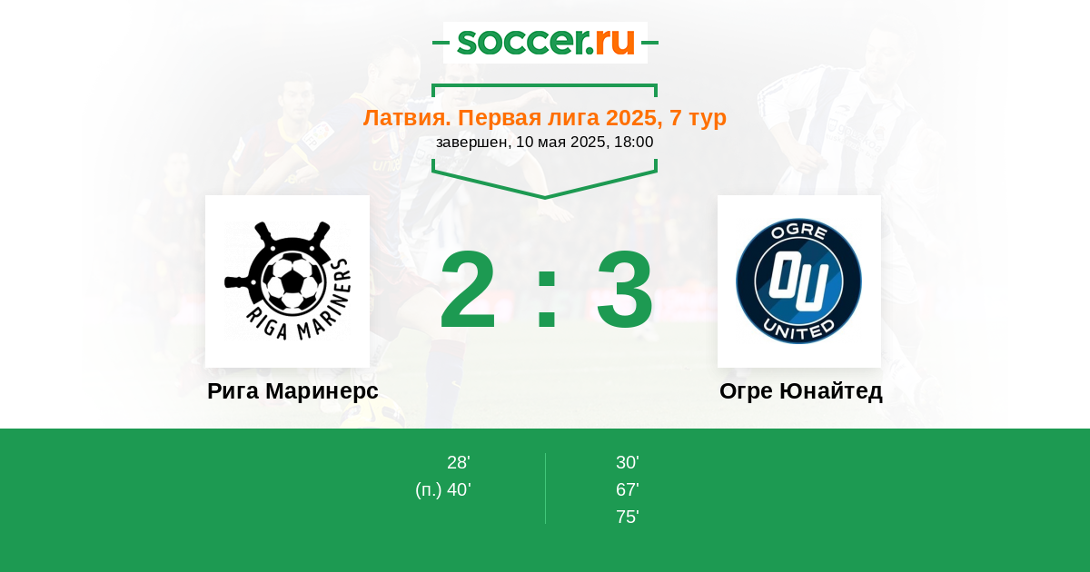 | Огре Юнайтед | 3:0 | 3:0 | 0:0 |