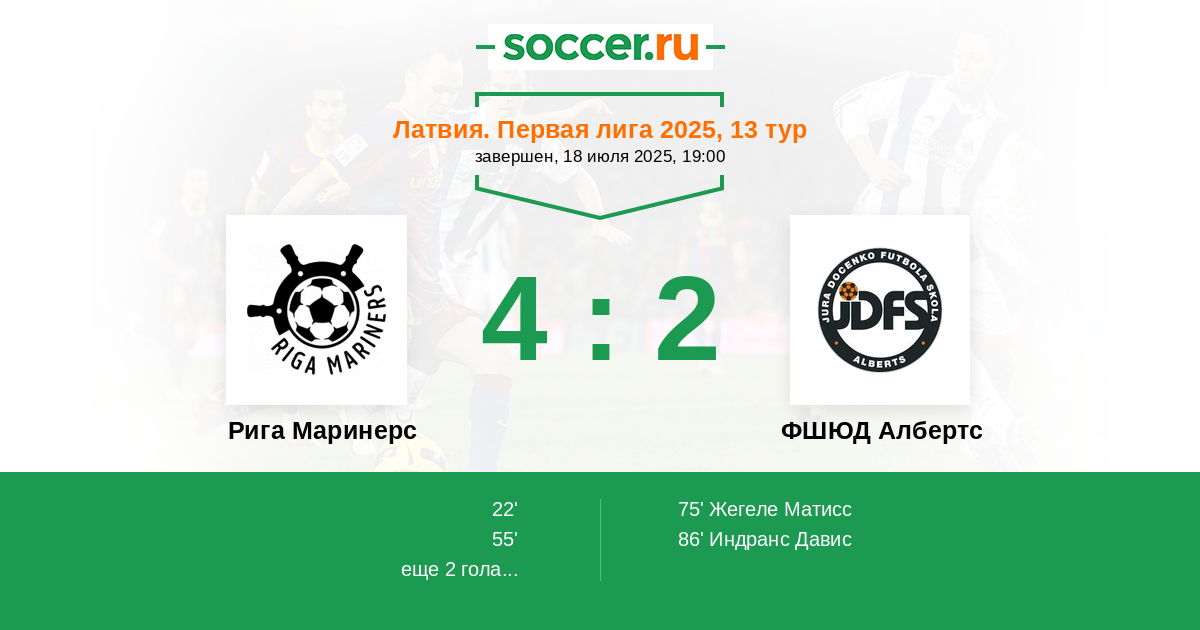 | Рига Маринерс | ФШЮД Албертс | |