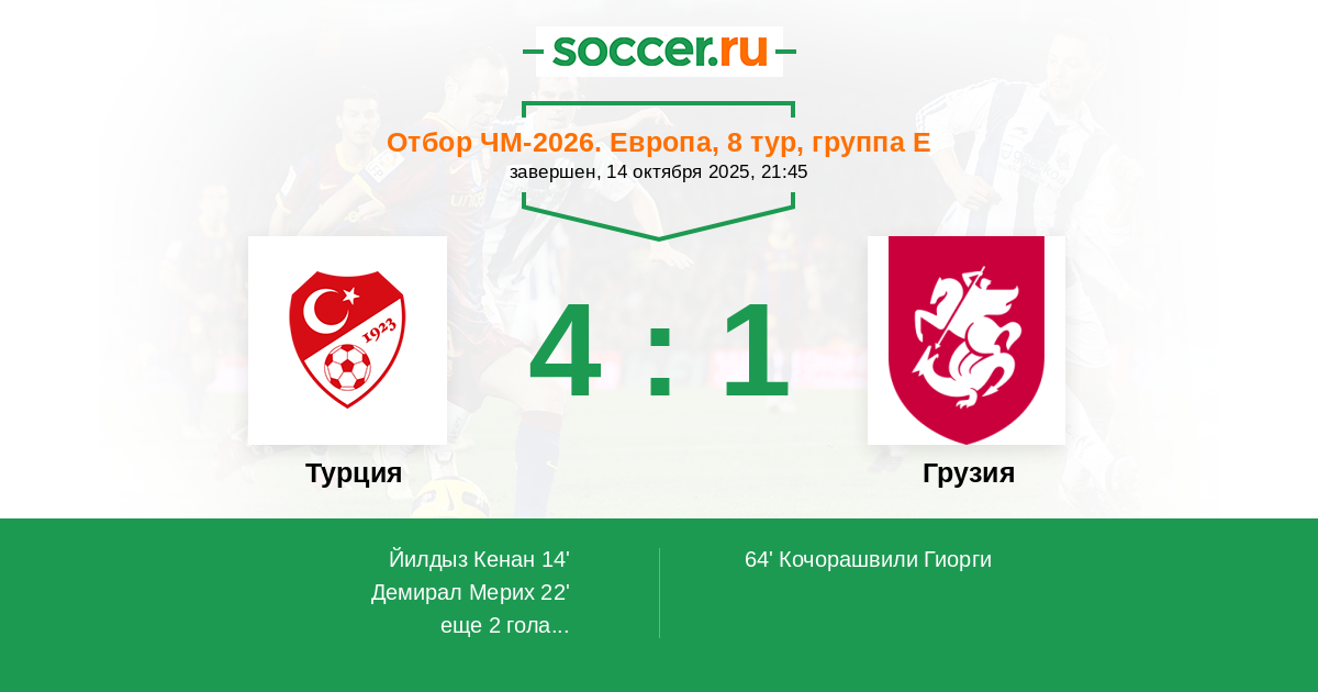Турция и Грузия уже выдали зрелищный матч в первом круге — 3:2 в пользу турок. тогда обе команды легко вскрывали оборону и создавали моменты.