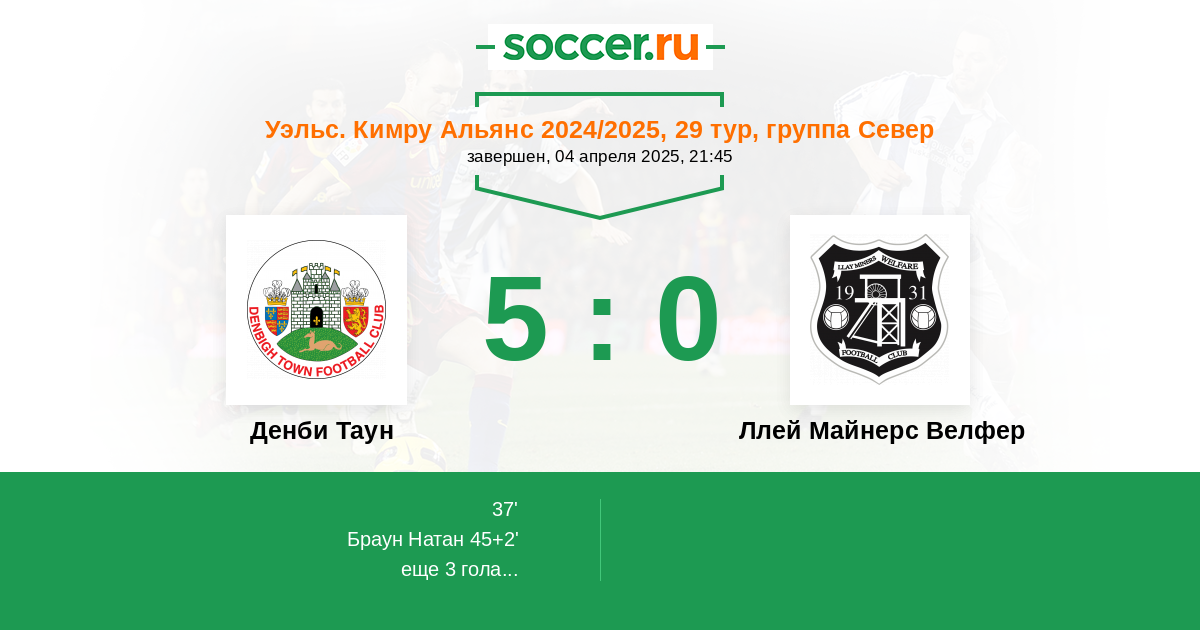 | Денби Таун | 2:3 | 0:0 | 2:3 |