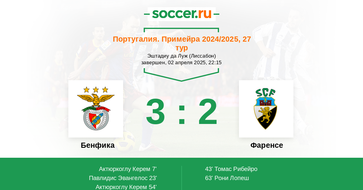 | Бенфика | 59:25 | 37:12 | 22:13 |