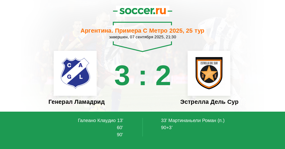| Генерал Ламадрид | Эстрелла Дель Сур | |