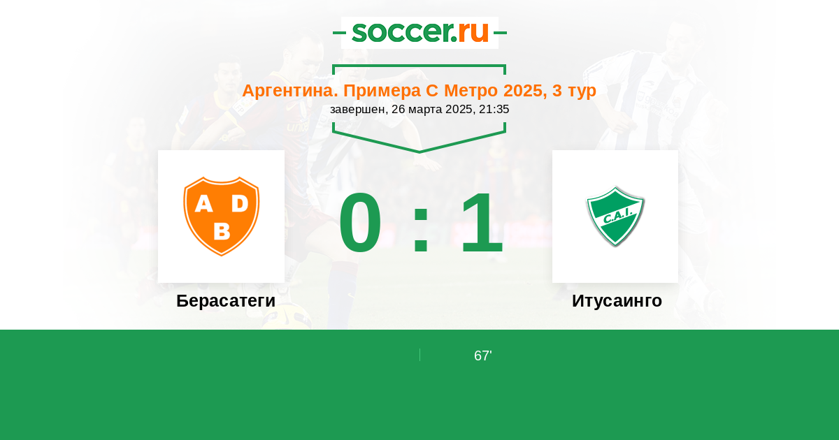 | Аргентина. Примера С Метро | 13 | 1 | 5 | 7 |