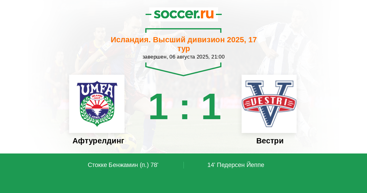 | Исландия. Высший дивизион | 2 | 0 | 1 | 1 |
