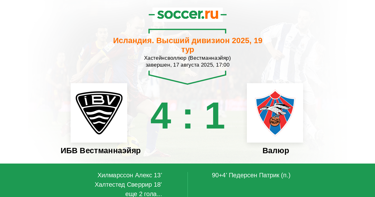 | ИБВ Вестманнаэйяр | 75:78 | 49:29 | 26:49 |