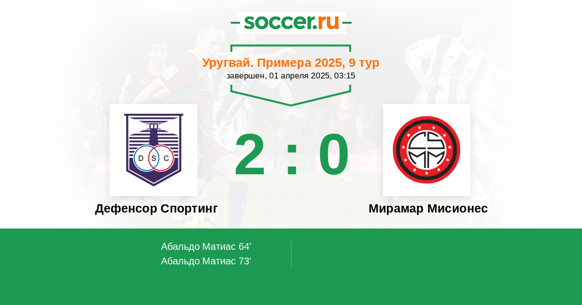 | Дефенсор Спортинг | 3:0 | 3:0 | 0:0 |
