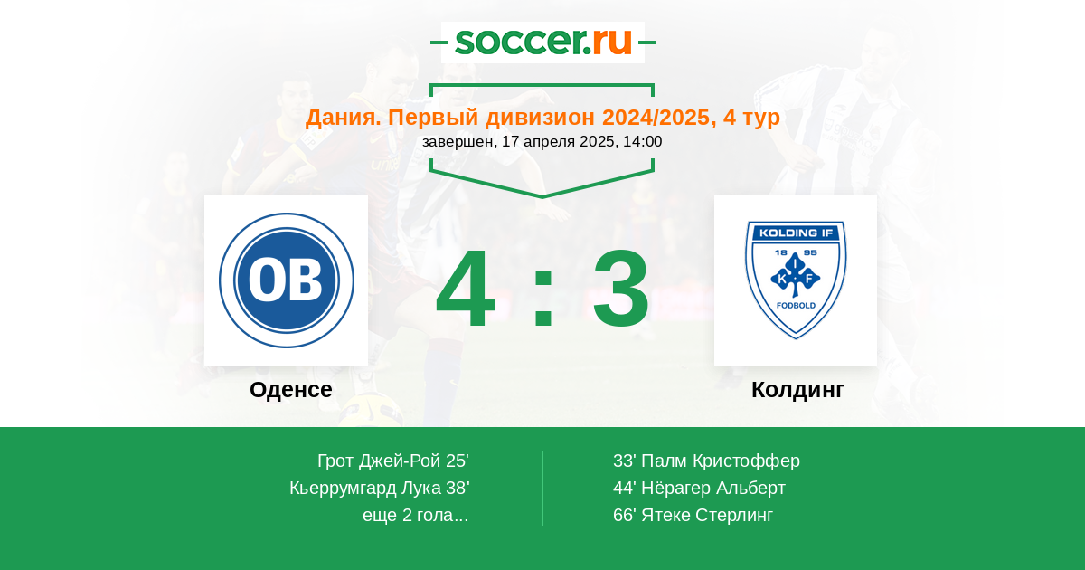 | Оденсе | 4:3 | 1:1 | 3:2 |