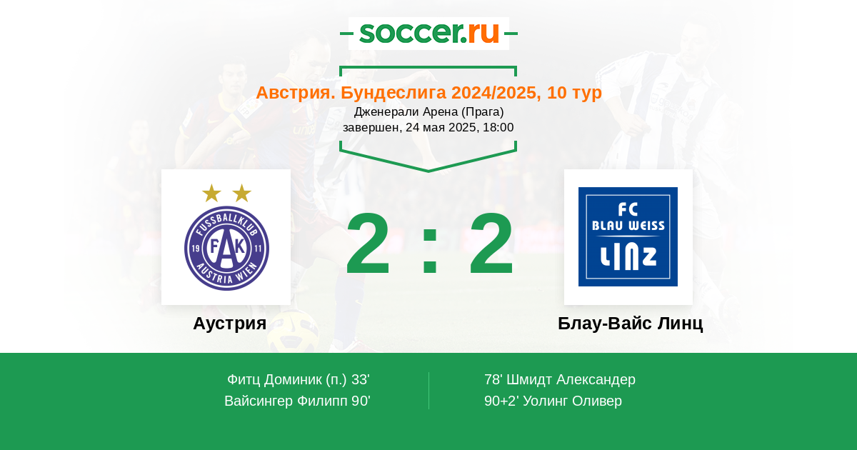 | Блау-Вайс Линц | 7:15 | 5:9 | 2:6 |