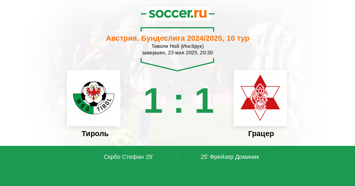 | Тироль | 4:3 | 2:0 | 2:3 |