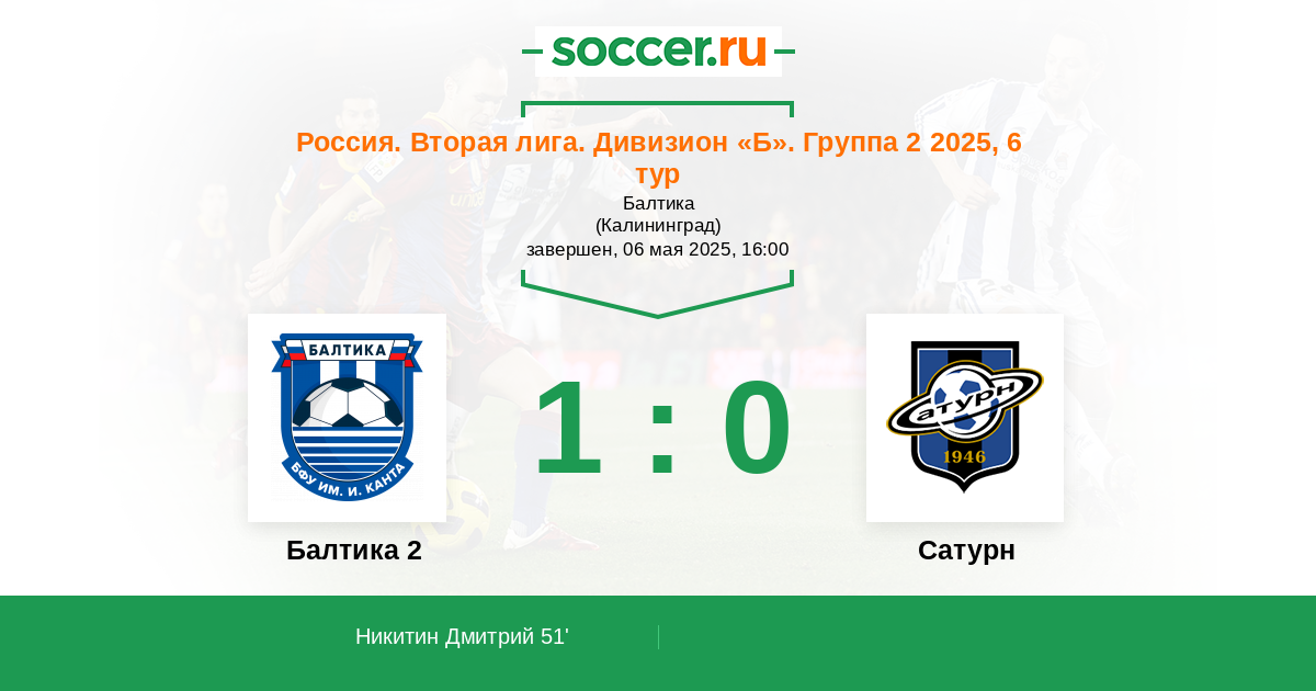 | Балтика 2 | 2:0 | 0:0 | 2:0 |