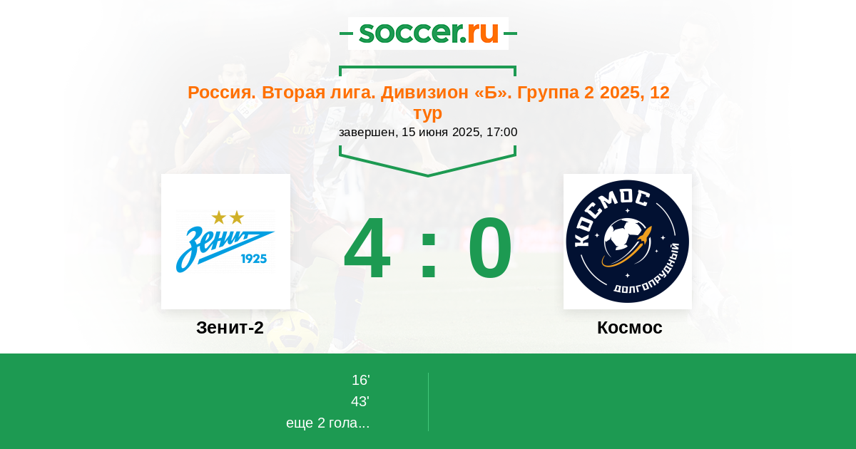 | Россия. Вторая лига. Дивизион «Б». Группа 2 | 1 | 0 | 0 | 1 |