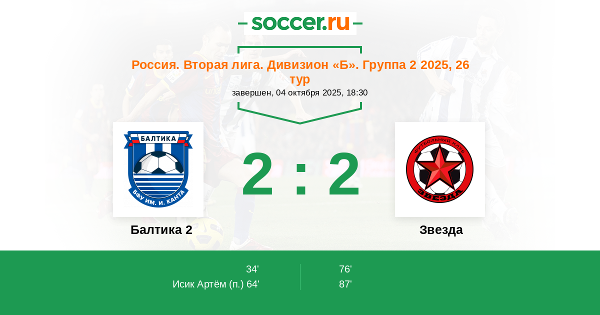 | Балтика 2 | 2:2 | 0:0 | 2:2 |