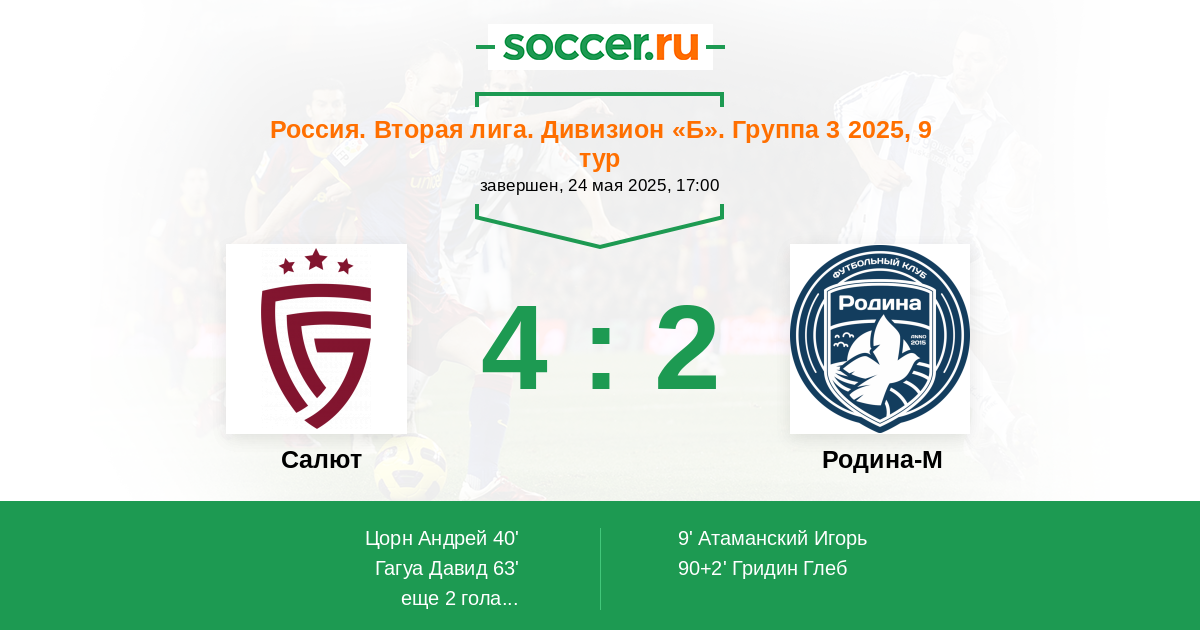 | Россия. Вторая лига. Дивизион «Б». Группа 3 | 1 | 0 | 1 | 0 |