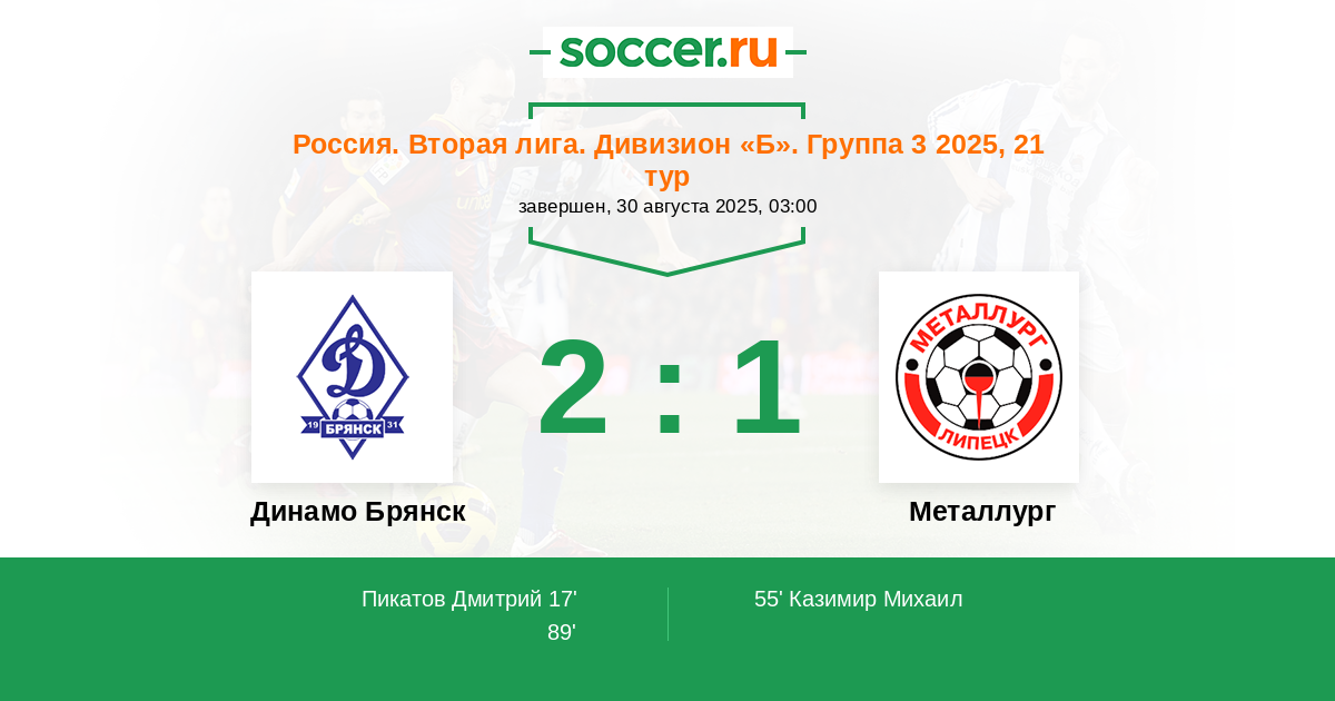 | Динамо Брянск | 18:19 | 12:6 | 6:13 |