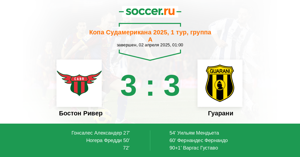 | Гуарани | 0:5 | 0:5 | 0:0 |