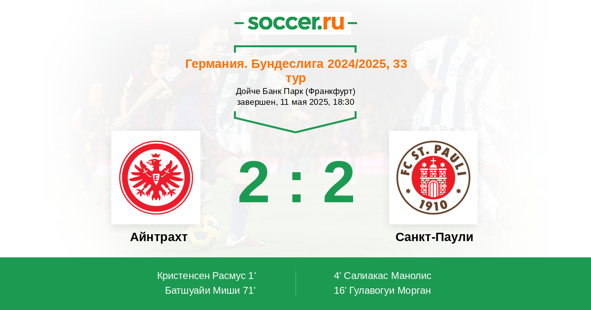 | Айнтрахт | Санкт-Паули | |