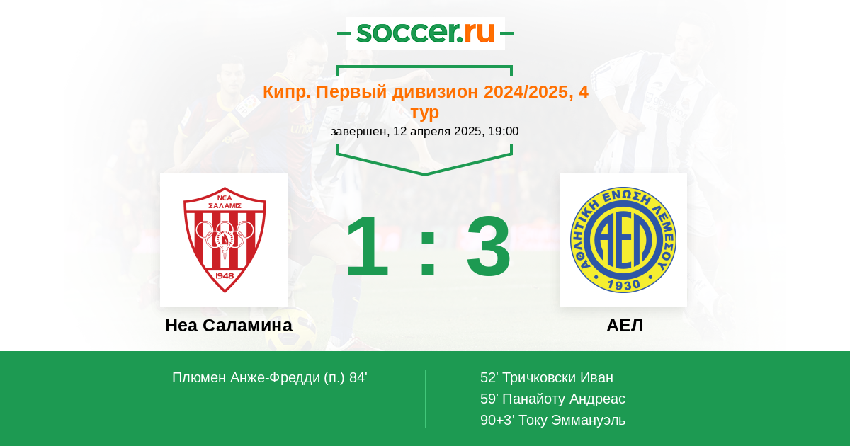 | Неа Саламина | 71:106 | 33:43 | 38:63 |