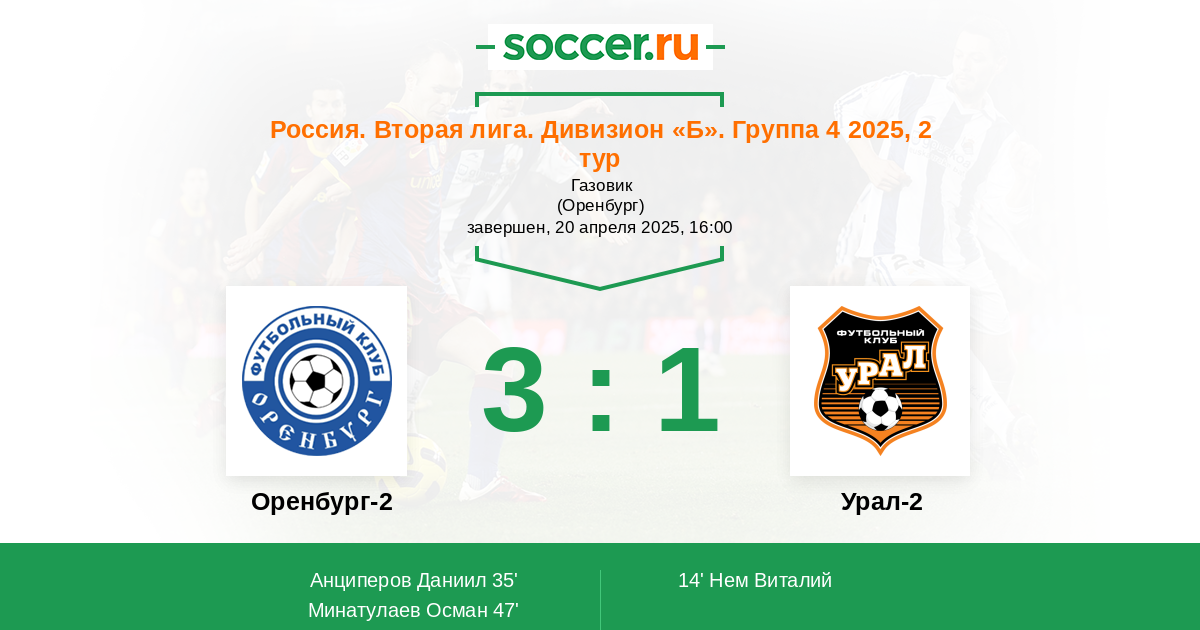 | Оренбург-2 | 17:19 | 7:10 | 10:9 |