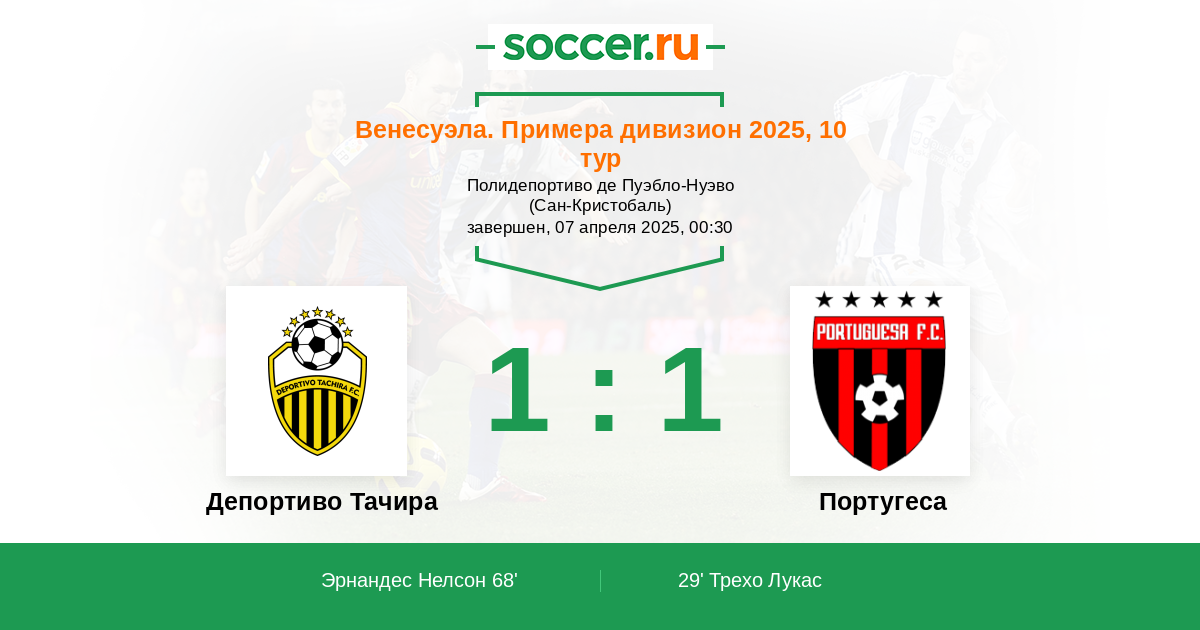 | Депортиво Тачира | 58:28 | 40:13 | 18:15 |