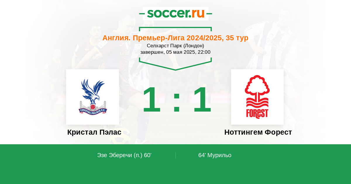 | Кристал Пэлас | Ноттингем Форест | |