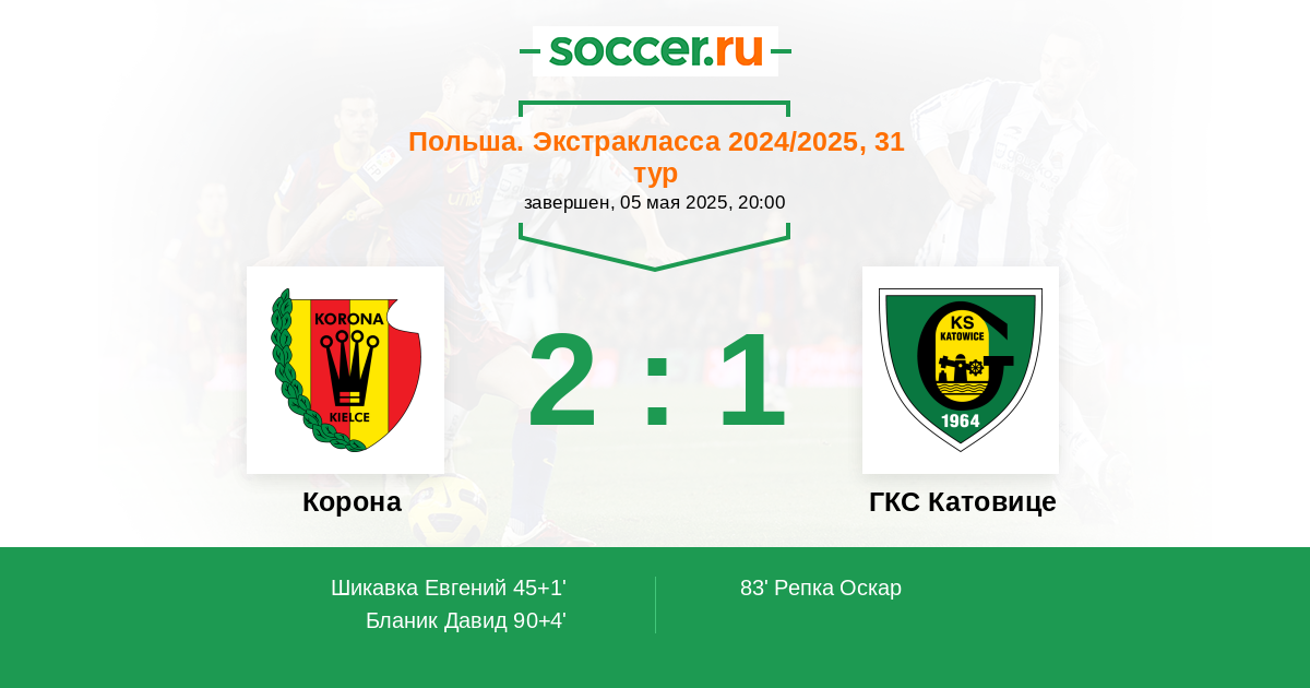 | ГКС Катовице | 11:8 | 6:4 | 5:4 |
