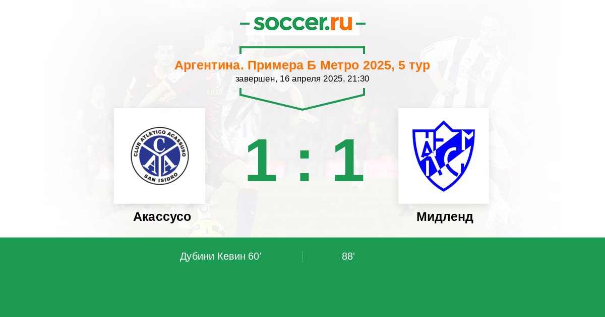 | Акассусо | 3:6 | 2:1 | 1:5 |