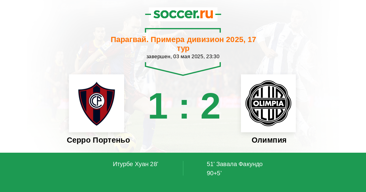 | Серро Портеньо | 63:67 | 33:33 | 30:34 |