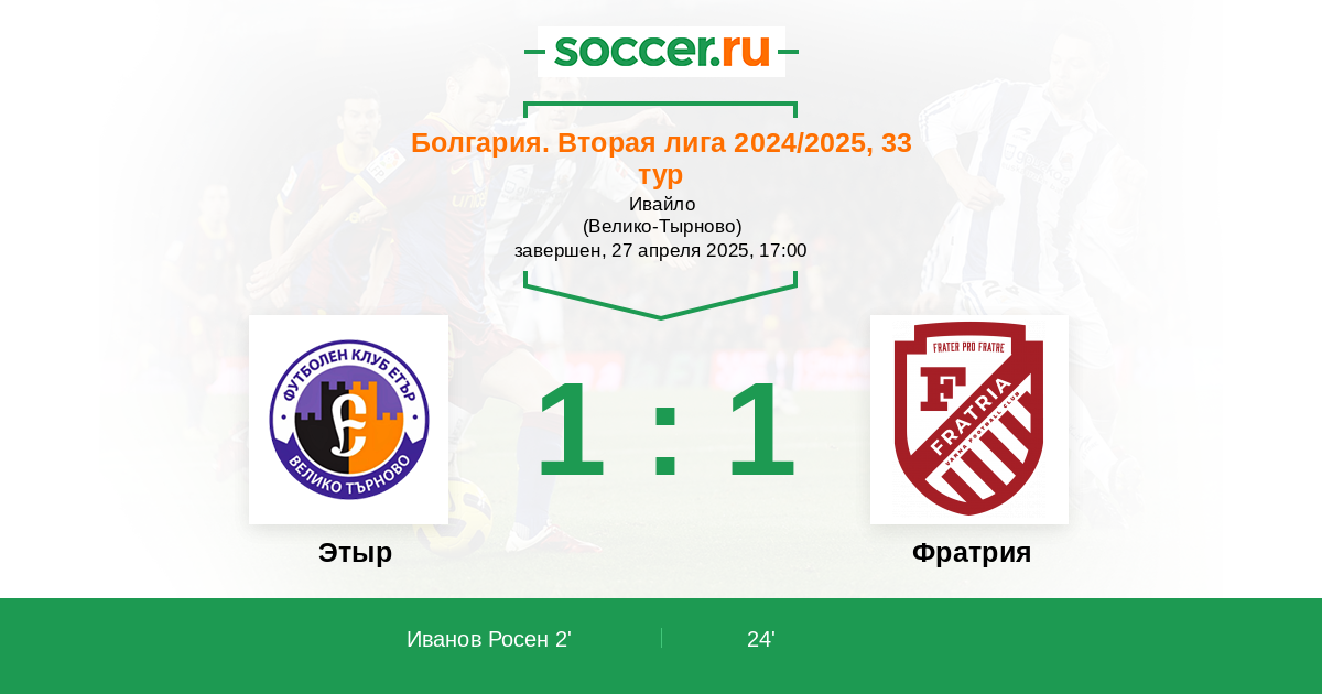 | Болгария. Вторая лига | 2 | 0 | 2 | 0 |